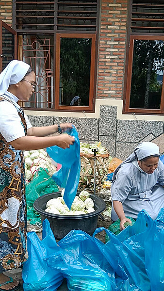 „Das Mutterhaus ist inzwischen zu einem Herzstück der Hilfe geworden. Menschen aus vielen Orten bringen ihre Spenden dorthin oder holen Hilfsgüter ab. In den letzten Tagen erreichten uns Unterstützung aus den Pfarreien Kabanjahe, Tiga Binanga und St. Franziskus Berastagi (Bistum Medan). Auch Wohltäterinnen und Wohltäter aus Jakarta und Medan vertrauen uns Schwestern täglich ihre Hilfe an, damit diese direkt zu den Betroffenen gelangt“, berichtet Sr. Natalia.