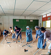 Seit dem 10. Dezember ist die Grundschule St. Franziskus wieder geöffnet – wenn auch eingeschränkt. Viele Kinder tragen notdürftige Kleidung, da ihre Uniformen durch die Flut zerstört wurden. Die Realschule und Oberschule bleiben geschlossen, bis die Klassenräume und Möbel gereinigt und repariert sind.