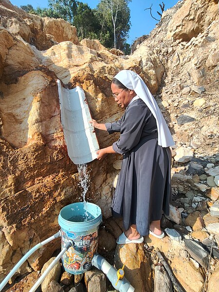 Nach über zwei Wochen mit trübem Wasser konnte der verschüttete Tiefbrunnen von dem Kapuziner-Bruder Cyprianus und seinem Team freigelegt und repariert werden. Endlich steht der Gemeinschaft wieder sauberes Wasser zum Trinken und Kochen zur Verfügung. Die Postulantinnen und der Konvent St. Klara sind weiterhin auf das Mutterhaus angewiesen, da ihre Leitungen noch nicht vollständig funktionieren. Mehrere Wassertanks wurden angeschafft, um die Versorgung zu erleichtern.