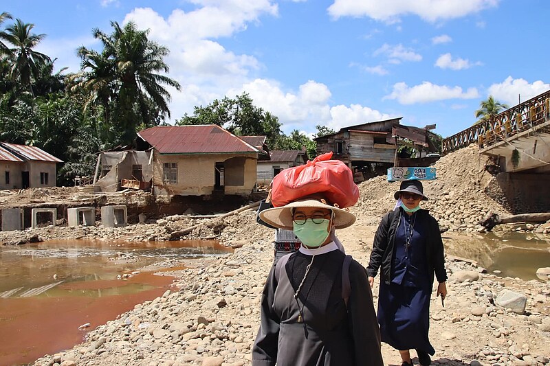 Während Straßen von Schlamm und umgestürzten Bäumen blockiert sind und Brücken noch immer unpassierbar bleiben, erreicht ein Bus voller Hilfsgüter nach einer 16-stündigen Fahrt endlich die Küstenstadt Sibolga. Am Steuer dieser ersten Hilfsaktion steht Sr. Petronela, eine Franziskanerin aus Sibolga, die als Leiterin des Mädcheninternats in Medan arbeitet.