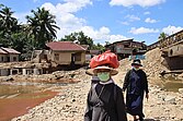 Generaloberin Sr. Maria Hanna konnte am 9. Dezember mit Sr. M. Sesilia sprechen. Sie berichtet: „Die Situation in Pandan ist schrecklich. Nach wie vor toben Sturm und Monsunregen. Täglich werden neue Bäume und Erdlawinen vom Berg her vor dem Mutterhaus angeschwemmt. Alle leben in der Angst, dass noch mehr vom Berg wegbricht. Das ganze Haus ist voller Menschen, die Hab und Gut verloren haben. Die Situation ist sehr belastend, die Schwestern müssen auch immer wieder Tote aus den Erdmassen bergen. Die Kapuziner, die täglich frisches Wasser anliefern und verteilen, helfen den Schwestern bei der Beerdigung. Nach wie vor halten Sturm und Monsunregen an, die Angst vor weiteren Wassermassen und Erdrutschen lässt niemanden schlafen.“
