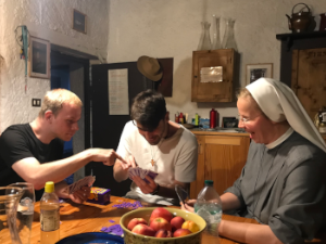 Die gemeinsame Zeit ist geprägt durch den klösterlichen Rhythmus des Stundengebetes, gemeinsame Arbeit in Garten und Haushalt und natürlich Zeit für sich, um auszuruhen und Kraft zu tanken, aber auch für Gespräche, die am Küchentisch oder beim Wandern immer wieder eine ungeahnte Tiefe bekommen.