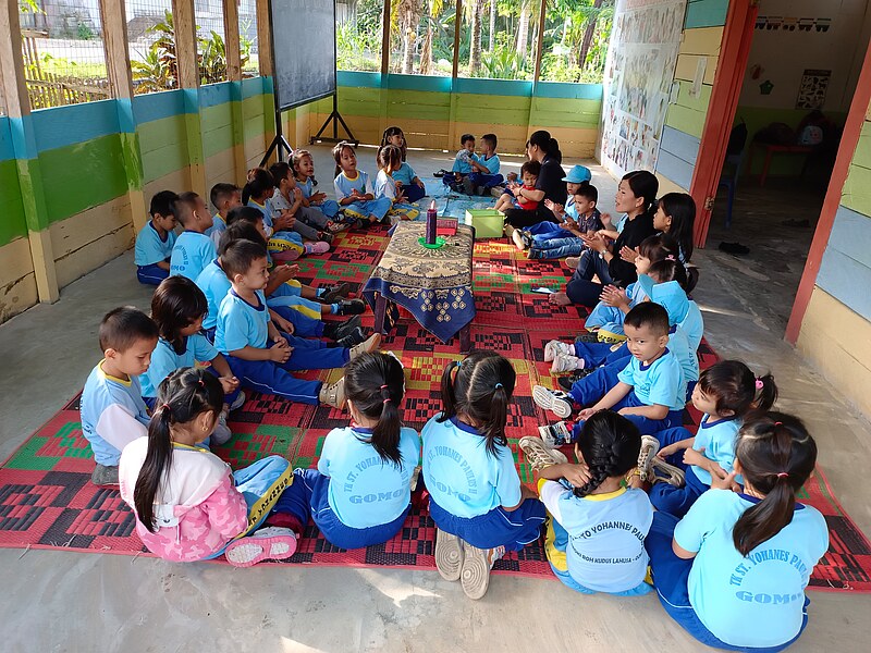 Im Juni 2021 begannen die Schwestern ihre Tätigkeit in Gomo. Sr. Veronika arbeitet im Kindergarten und Sr. Marsela im Haushalt. Den Kindergarten besuchen 48 Kinder, die in zwei Lern- und Spielgruppen aufgeteilt sind. Sr. Veronika wird von zwei Kindergärtnerinnen unterstützt. Es gibt noch kein Kindergartengebäude. Die Kinder lernen und spielen in einem Behelfshaus, das der Diözese Sibolga gehört. Das Gebäude ist alt und baufällig. Die Schwestern leben in einem einfachen Haus neben dem Kindergarten.